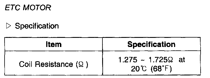 ETC Motor - Specification: