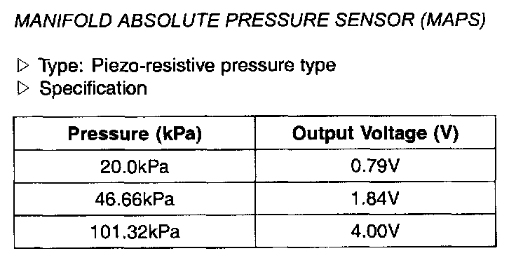 Manifold Absolute Pressure Sensor (MAPS) - Specification: