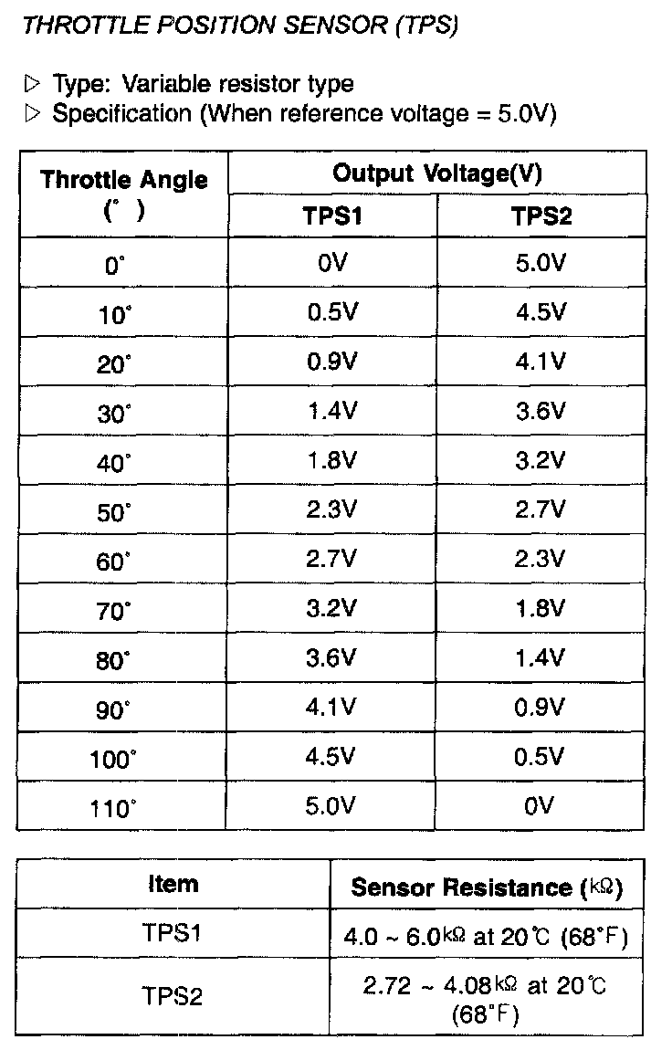 Throttle Position Sensor (TPS) - Specification: