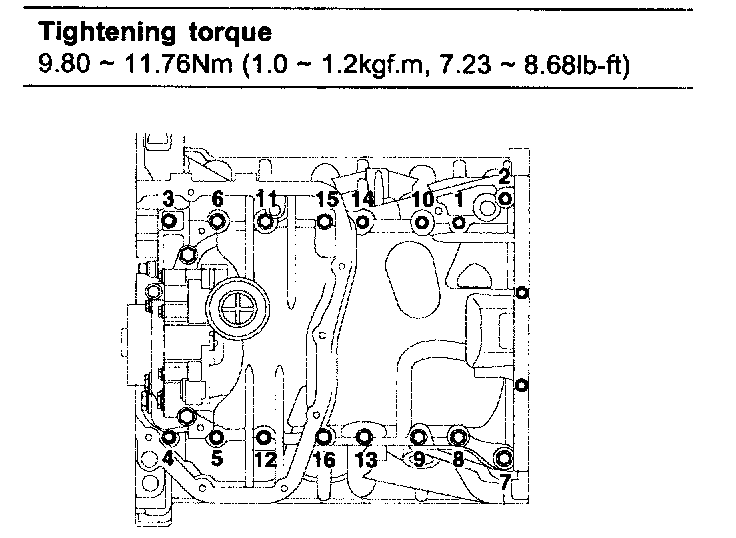 9.80-11.76 Nm (1.0-1.2 kgf-m, 7.23-8.68 ft. lbs.)