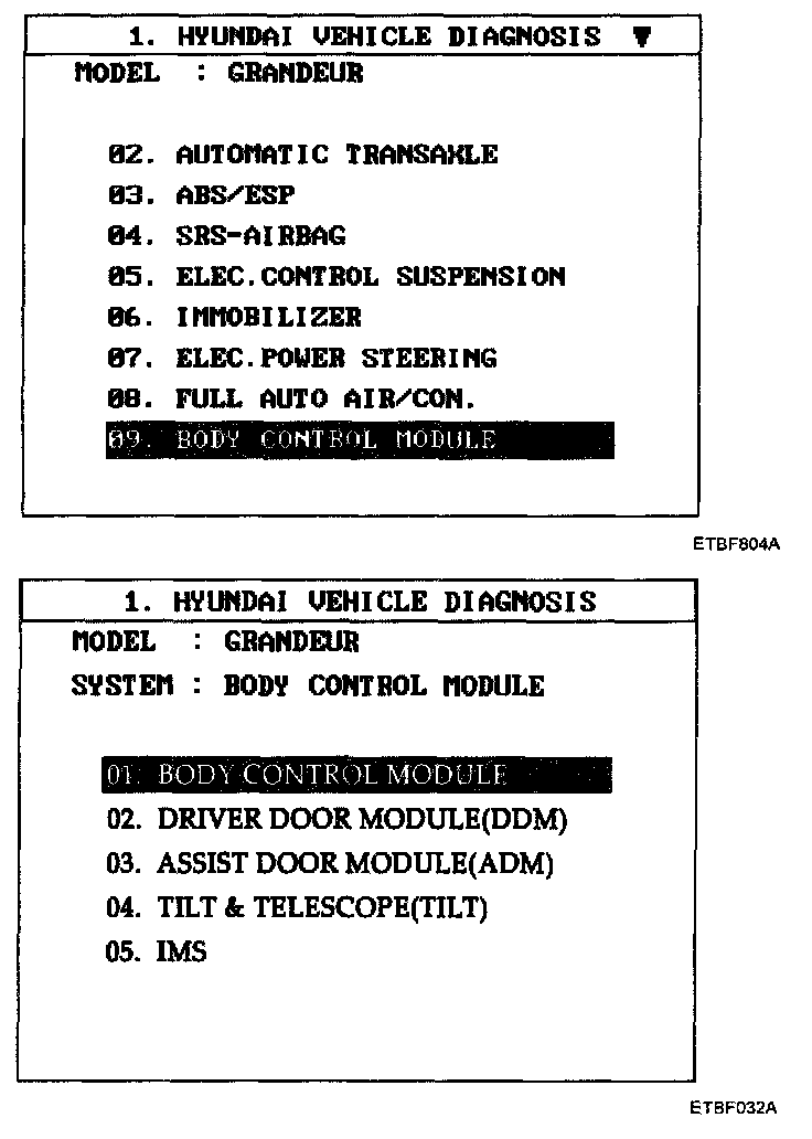 3. Select model and BCM menu.