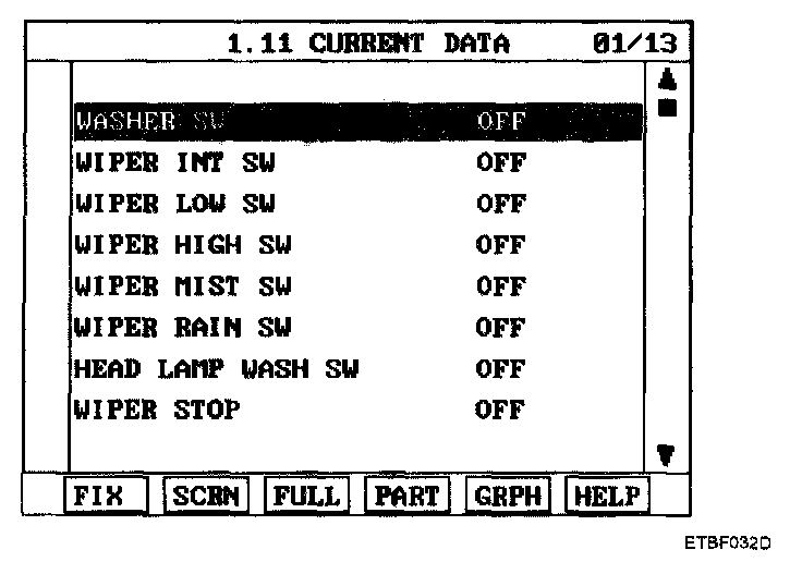 5. Check input/output value of washer & wiper switch.