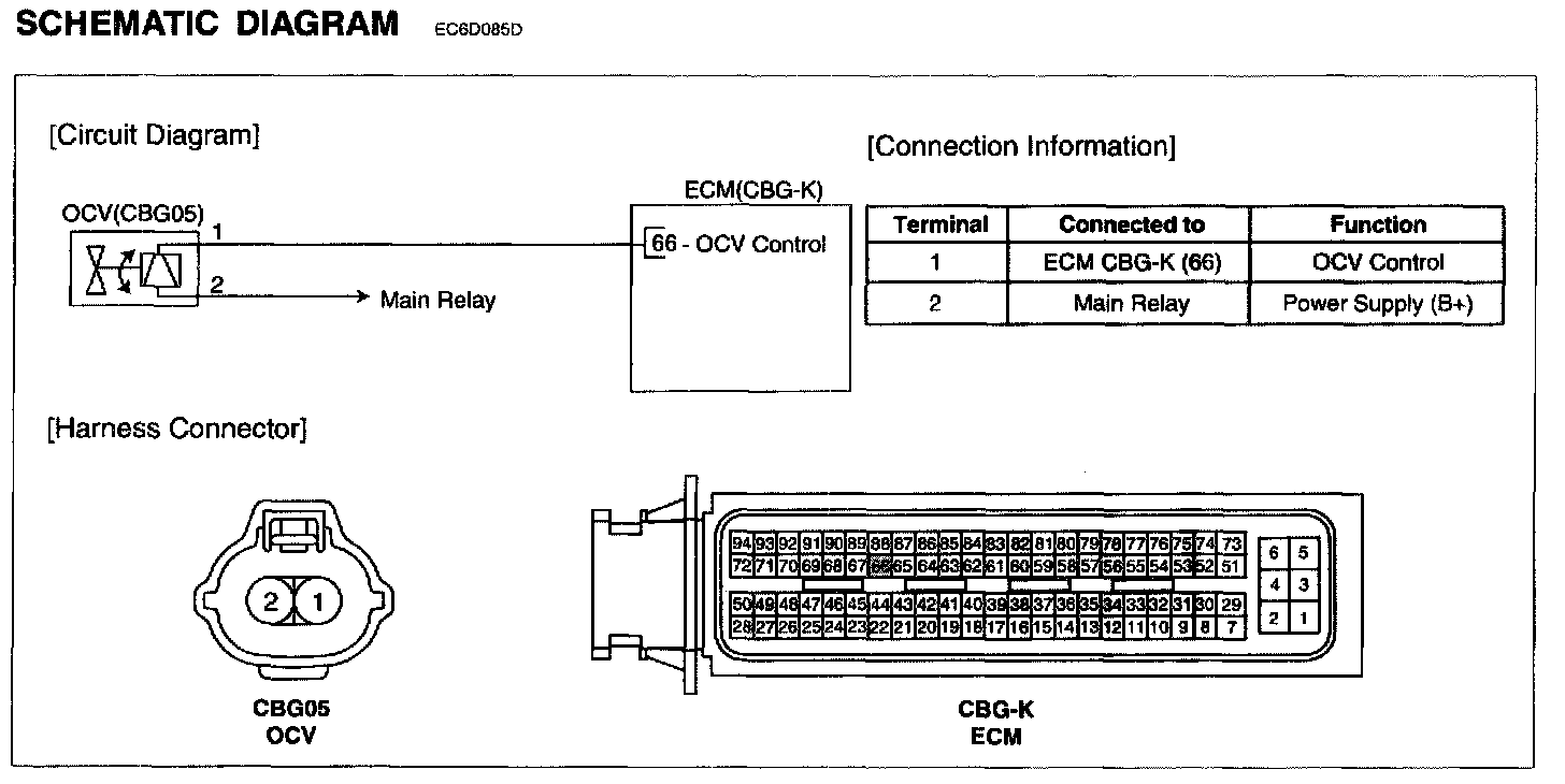 ECM sets DTC P0077 if the ECM detects that the OCV control circuit is open or short to battery.
