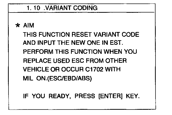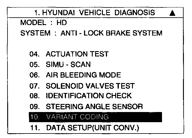 ^ If the warning lamp (ESC, EBD, ABS) is illuminated, follow the "Variant coding" again.