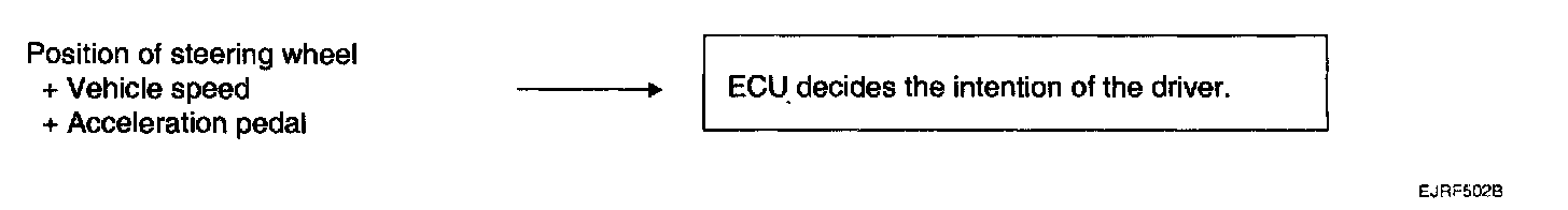 ABS/EBD function: The ECU changes the active sensor signal (current shift) coming from the four wheel sensors to the square waveform. By using the input of above signals, the ECU calculates the vehicle speed and the acceleration & deceleration of the four wheels. And, the ECU judges whether the ABS/EBD should be actuated or not.
