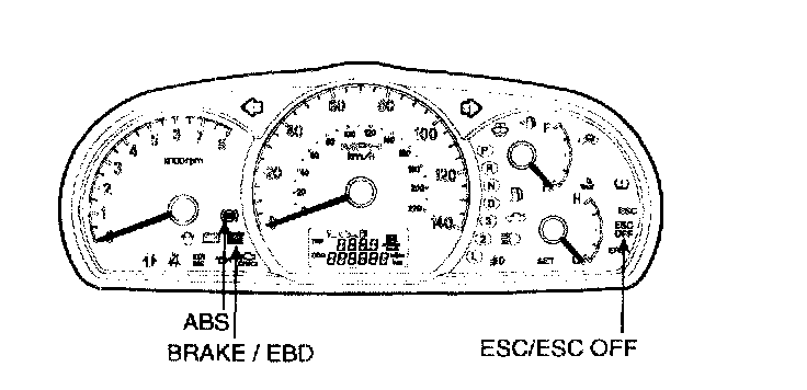 After the key-on, the ECU continually diagnoses the system failure. (self-diagnosis) if the system failure is detected, the ECU informs driver of the system failure through the BRAKE/ABS/ESC warning lamp. (fail-safe warning)