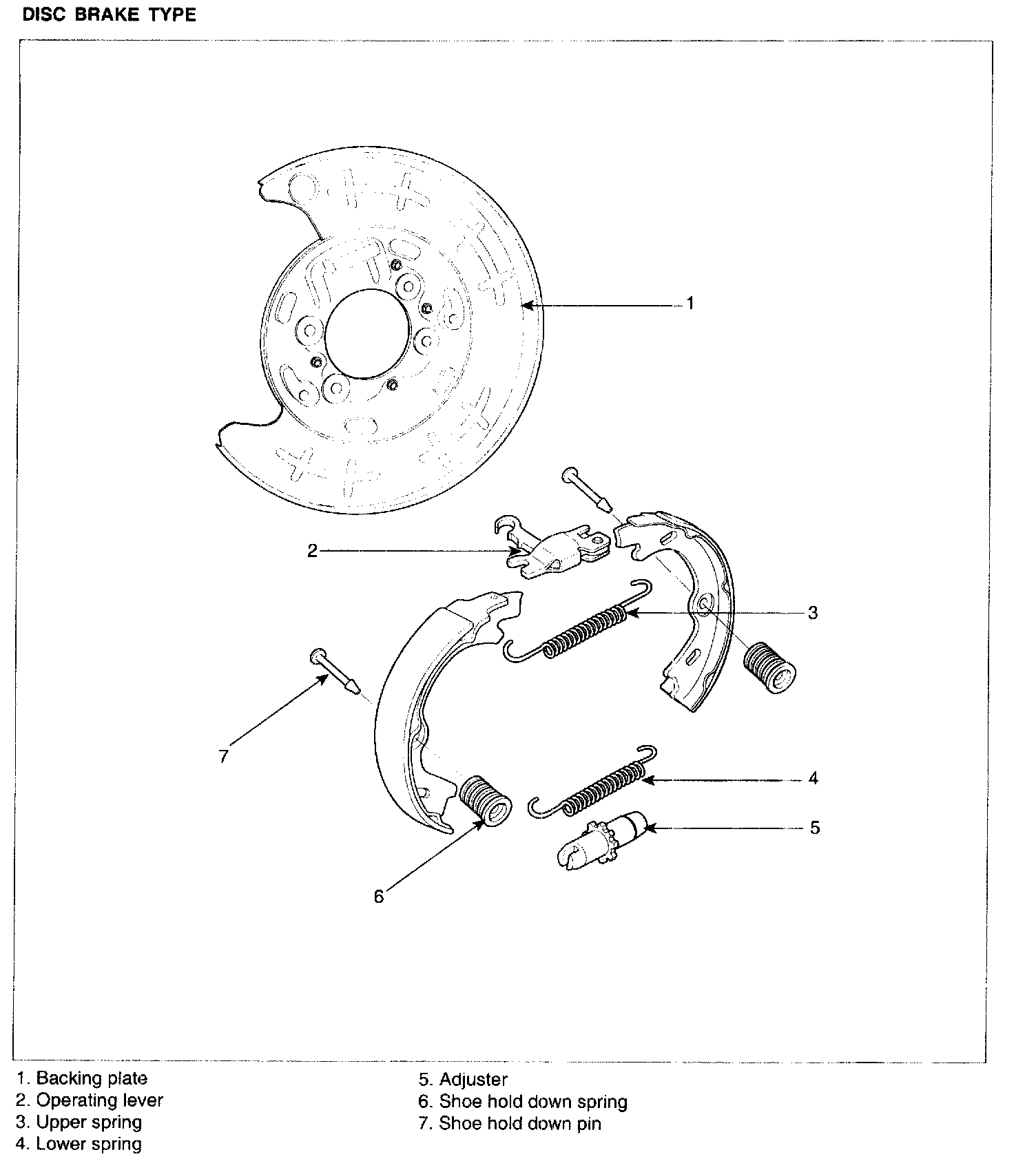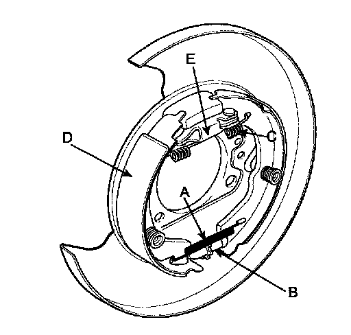 NOTE: After repairing the parking brake shoe, adjust the brake shoe clearance, and then adjust the parking brake lever stroke.