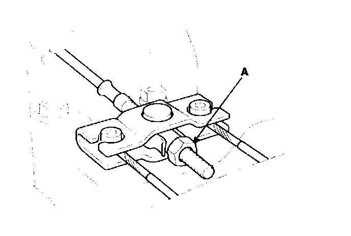 2. Loosen the adjusting nut (A) and the parking brake cables.