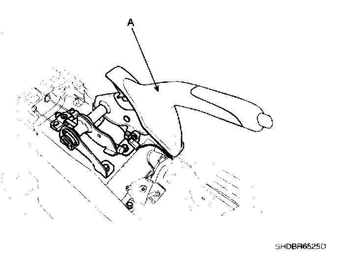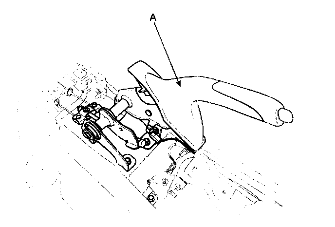 4. Remove the parking brake lever assembly (A) with loosening the bolts.