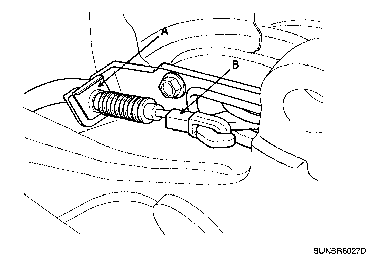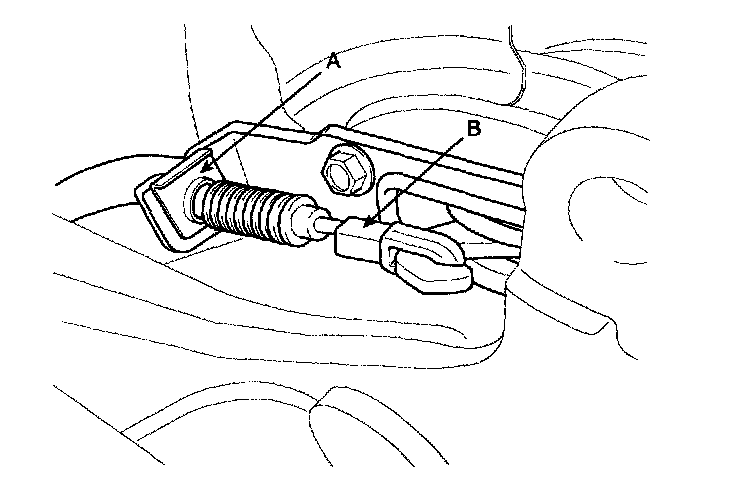3. Install the adjuster assembly (B) and the lower return spring (A).