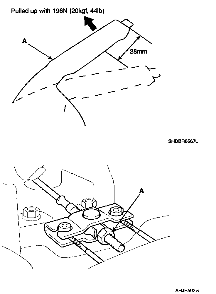 1. Must be free from troubles when the parking lever is operated at 686 N (70 kgf, 154 lb).