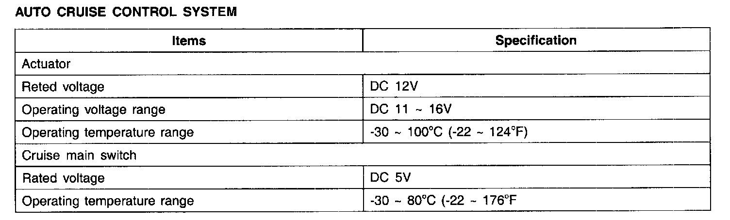 Cruise Control: Specifications