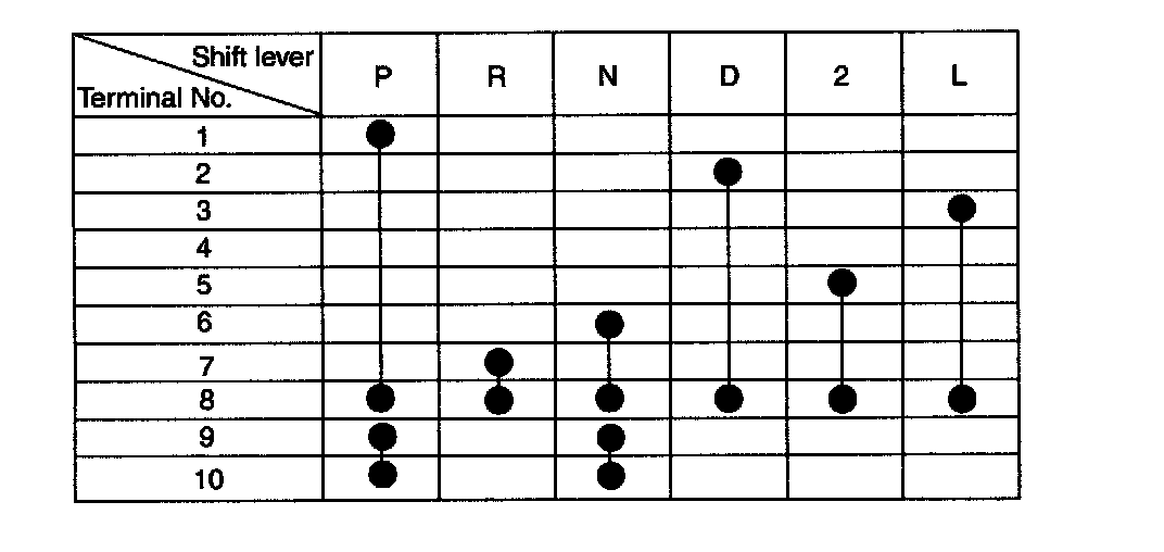 7. Turn the ignition switch ON after installation. Move the shift lever from "P" range to "L" range, and verify that the A/T gear position indicator follows the transaxle range switch.