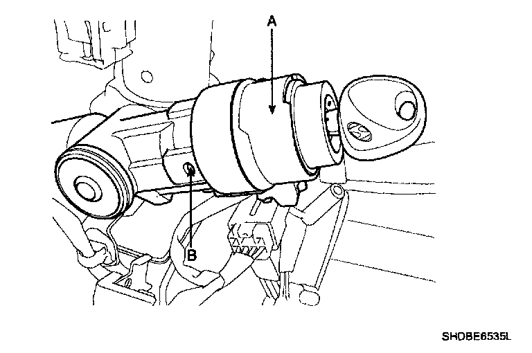 6. If it is necessary to remove the key lock cylinder (A), Remove the key lock cylinder (A) after pushing lock pin (B) with key ACC.