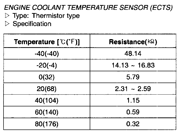 Engine Coolant Temperature Sensor (ECTS) - Specification: