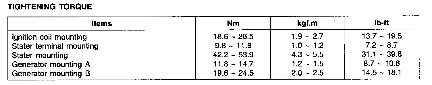 Tightening Torque - Specification: