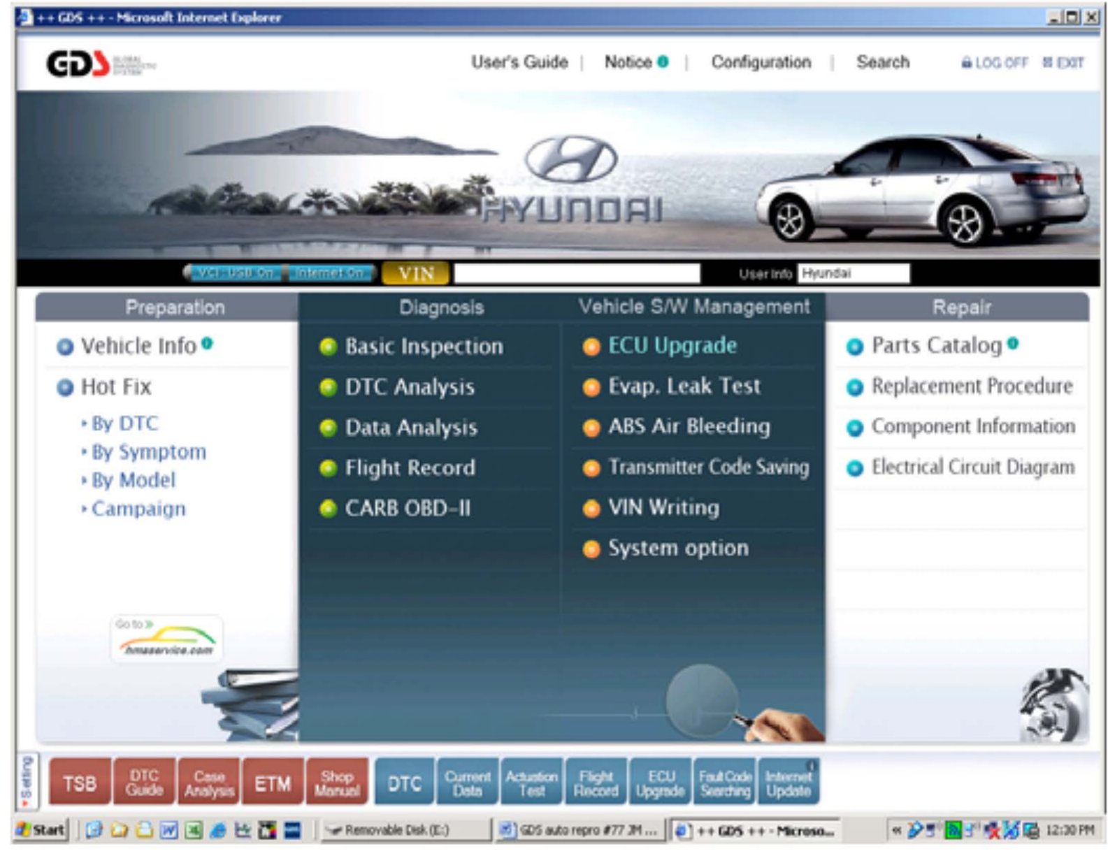 3. Make sure the GDS has the latest data by pressing the bottom right Internet Update button on the GDS screen. You will get a confirmation on the GDS screen if it is already updated; otherwise the Download Start button will be viewable and should be pressed to update the GDS.
