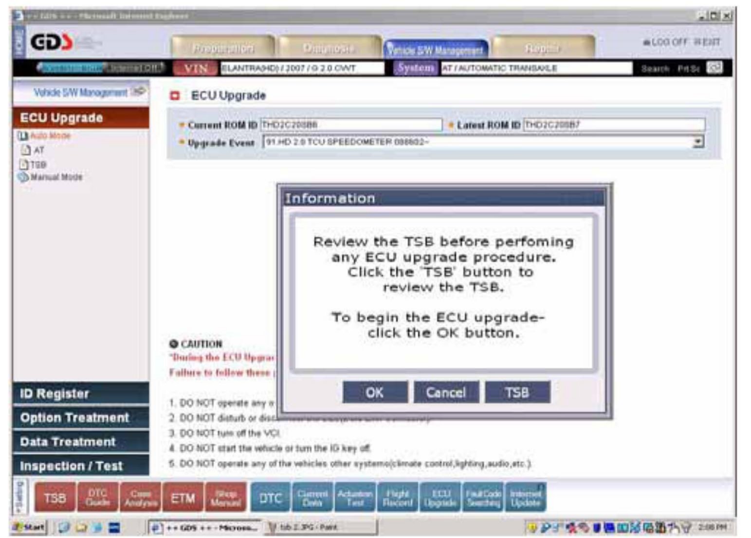 11. Select OK to confirm you are correctly following these TSB instructions.