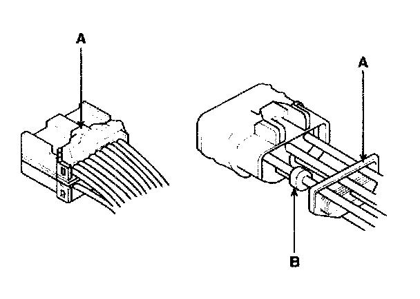 8. Before connecting connectors, make sure the terminals (A) are in place and not bent.