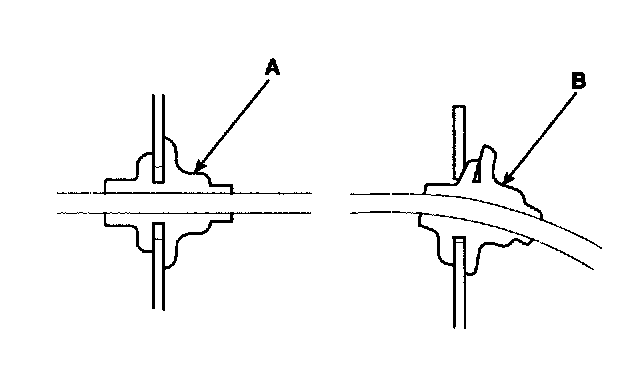 9. Check for loose retainer (A) and rubber seals (B).