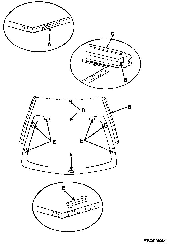 4. When attaching the molding, make it in line (D) with the windshield glass and attach the windshield glass pad (E)to the designated place.
