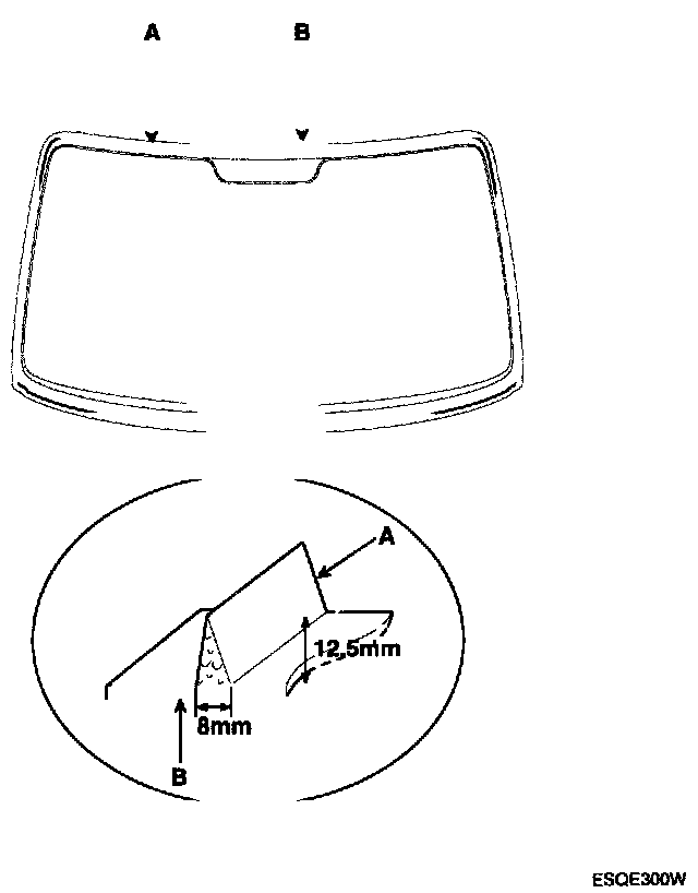 2. Remove the molding (A) from the edge of the windshield (B). If necessary, cut the molding with a utility knife.