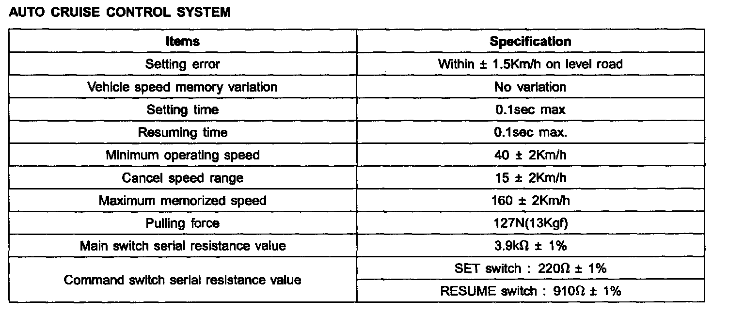 Cruise Control: Specifications