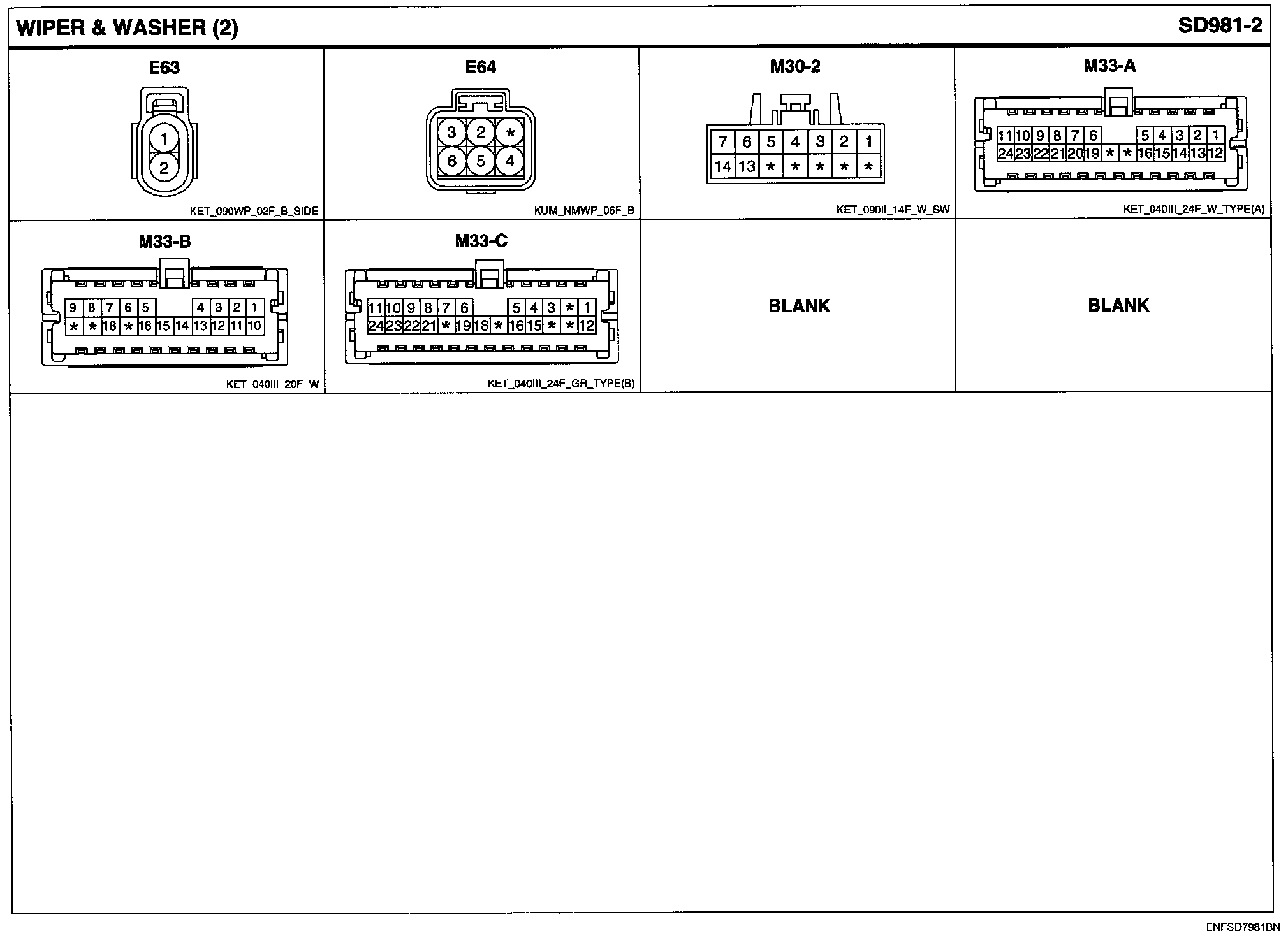 Wiper & Washer Connector Pin Outs: