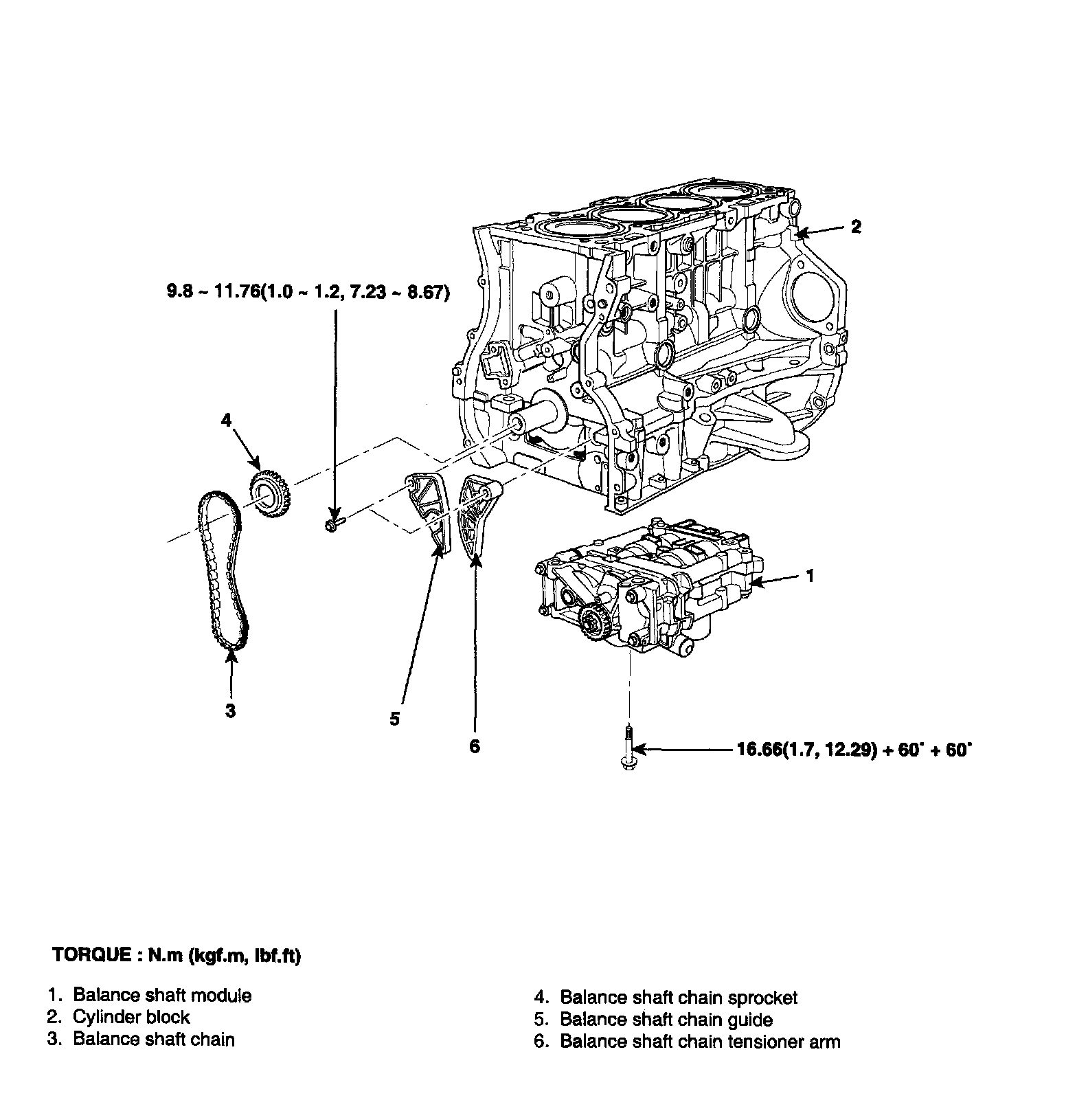 Tightening torque: 16.66 Nm (1.7 kgf.m, 12.3 ft. lbs.) + 60° + 60°