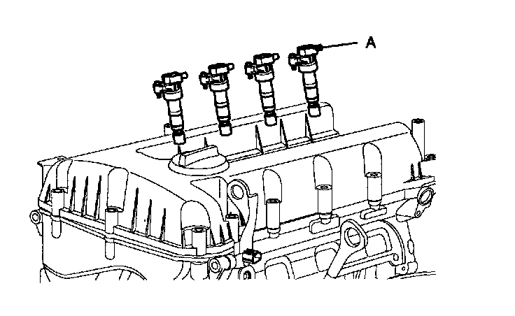 14. Remove the ignition coil (A).