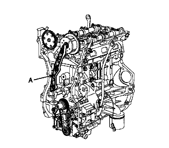 2. Install timing chain oil jet (A).