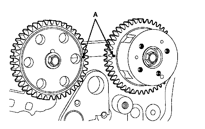 1. Check the camshaft sprocket and crankshaft sprocket for abnormal wear, cracks, or damage. Replace as necessary.