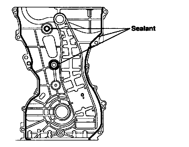 c. After applying liquid sealant Loctite 5900 on timing chain cover. The part must be assembled within 5 minutes after sealant was applied. Sealant should be applied without discontinuity.