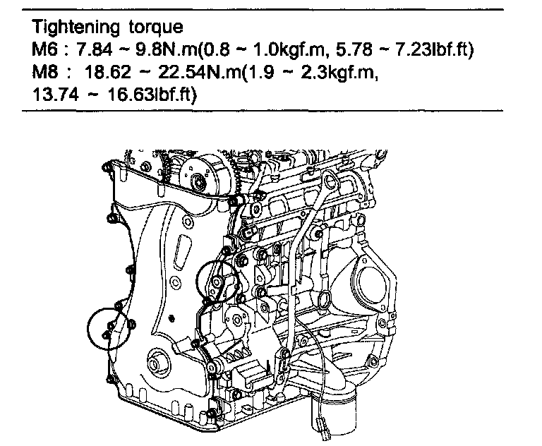 M8 18.62 - 22.54 Nm (1.9 - 2.3 kgf.m, 13.74 - 16.63 ft. lbs.)