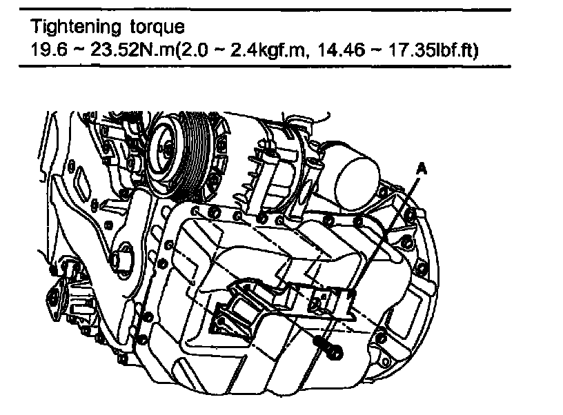 Tightening torque 19.6 - 23.52 Nm (2.0 - 2.4 kgf.m, 14.46 - 17.35 ft. lbs.)