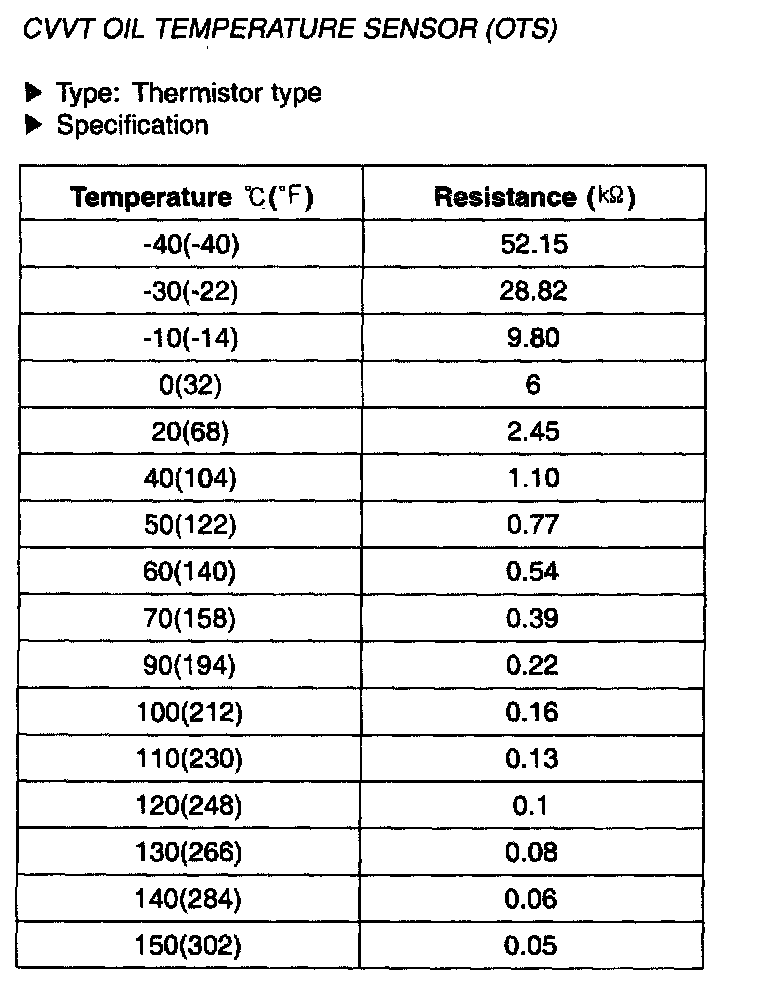 CVVT Oil Temperature Sensor (OTS) - Specification:
