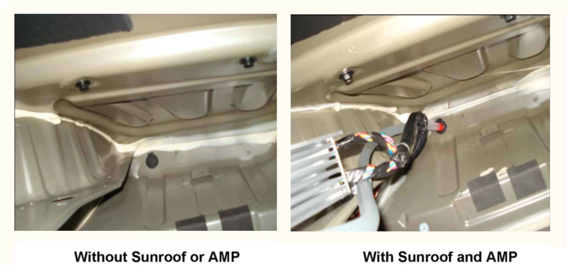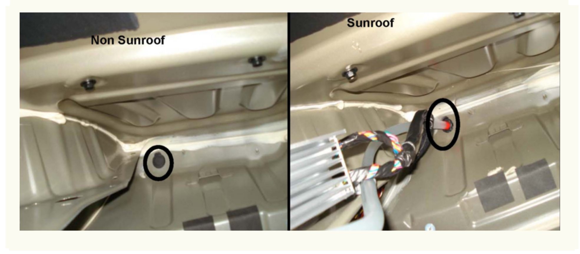 5. Inspect Non Sunroof Models drain plug for proper fit. Plug must be assembled from the outside of the vehicle.