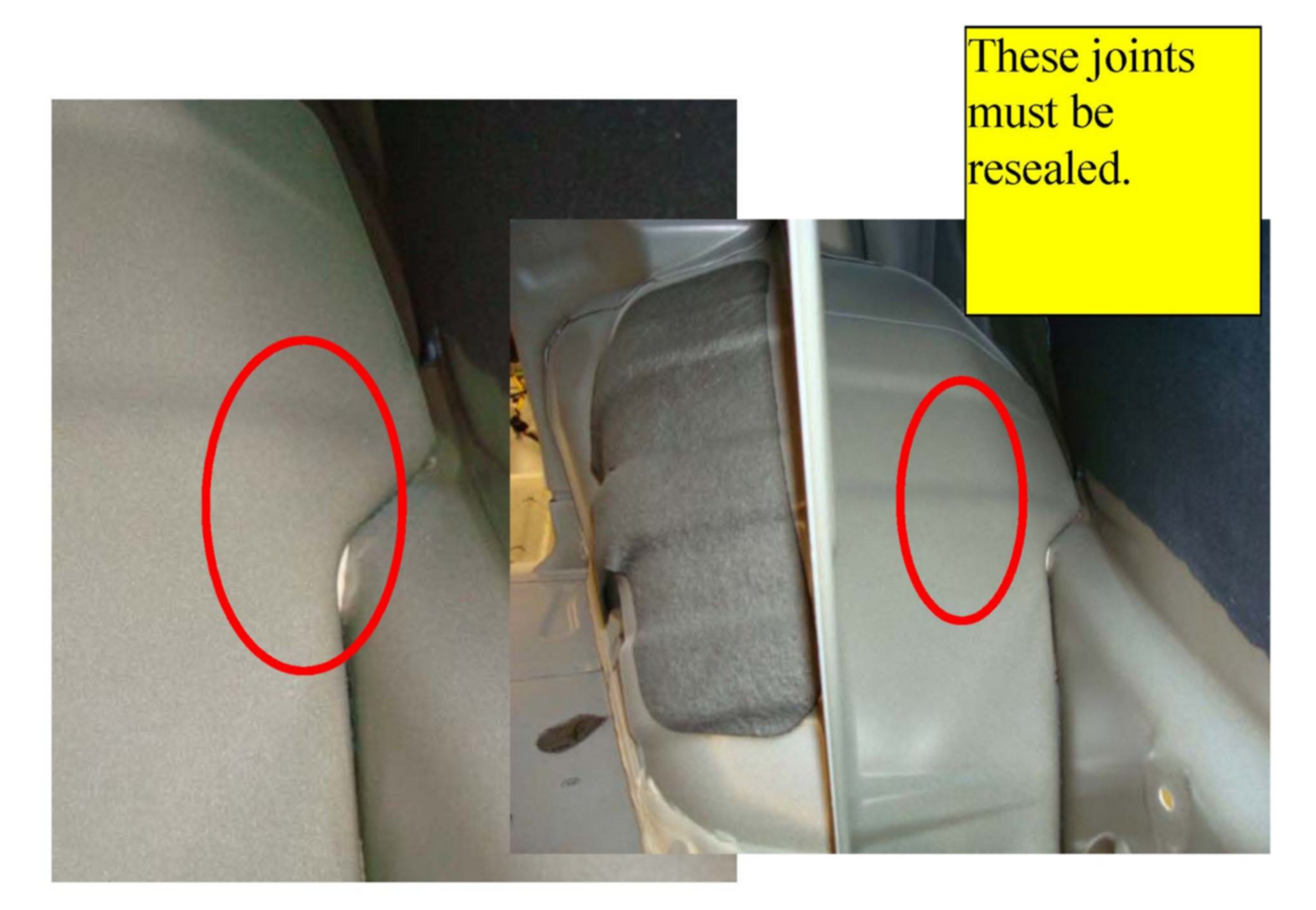 4. Reseal all joints and any other suspect water entry point with appropriate body sealer sealant.