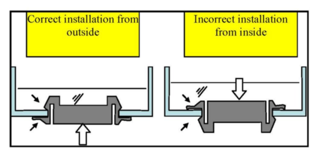 3. Note that water may enter at body seams, screw holes, body plugs, or weld joints.
