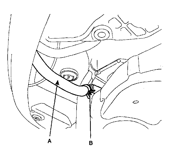 8. Inserting the power steering return hose (A), fix it with a clamp (B).