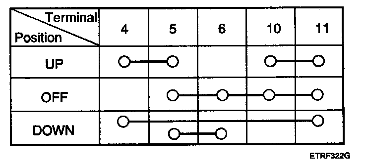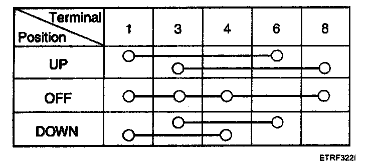 4. Check for continuity between the terminals in each switch position according to the table. If the continuity condition is not normal, replace the switch.