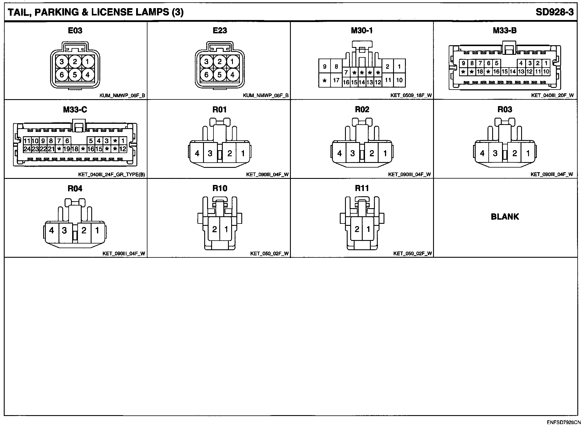 Tail, Parking & License Lamps Connector Pin Outs: