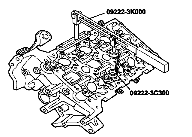 3) Using the SST (09222-3K000, 09222-3C300), compress the spring and install the retainer locks. After installing the valves, ensure that the retainer locks are correctly in place before releasing the valve spring compressor.
