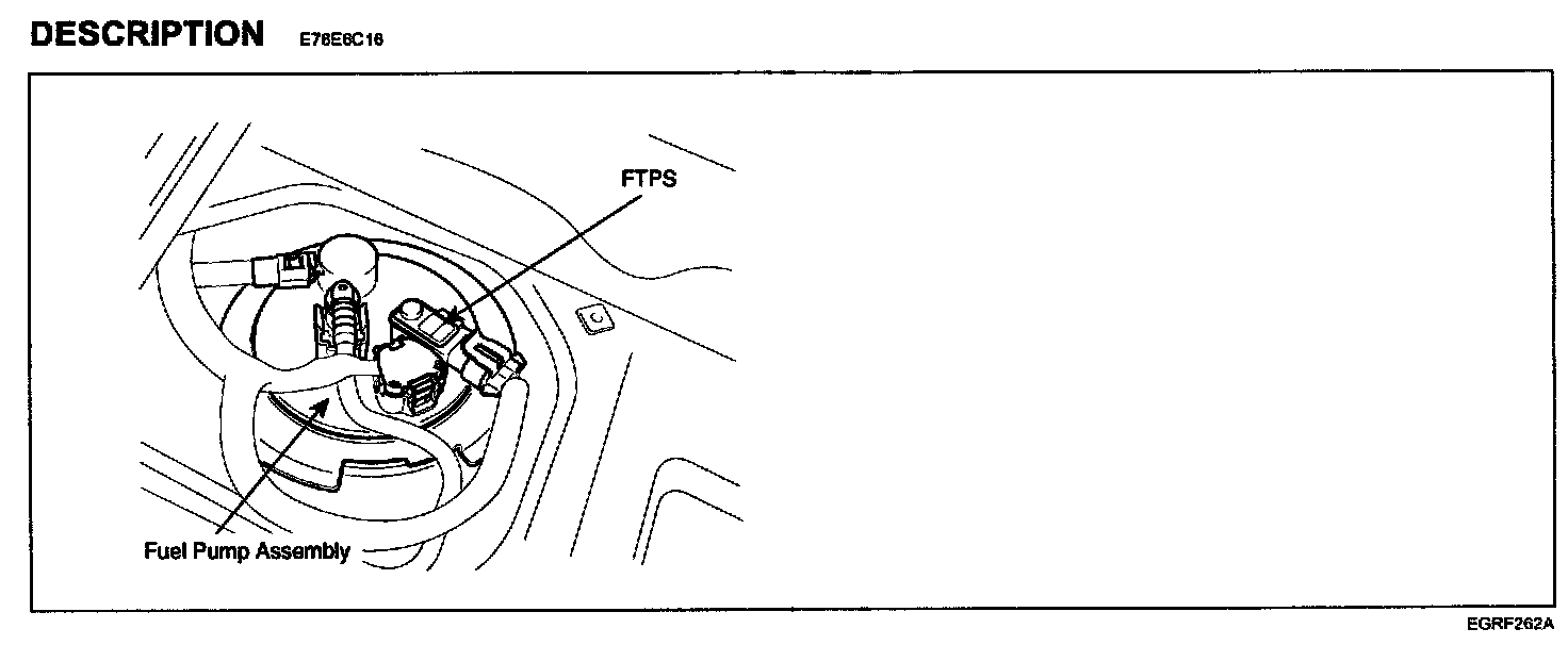 The evaporative emission control system prevents hydrocarbon vapors from escaping from the fuel tank into the atmosphere where they could form photochemical smog. Gasoline vapors are collected in the charcoal canister. The Fuel Tank Pressure Sensor (FTPS) is installed on fuel pump assembly and is an integral part of the evaporative monitoring system. The PCM monitors the FTPS signal to detect vacuum decay and excess vacuum. The FTPS measures the difference between the air pressure inside the fuel tank and outside air pressure to check the purge control solenoid valve operation and for leak detection in the evaporative emission control system by monitoring pressure and vacuum levels in the fuel tank during the purge control solenoid valve operating cycles.
