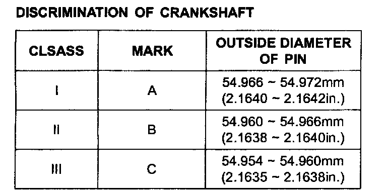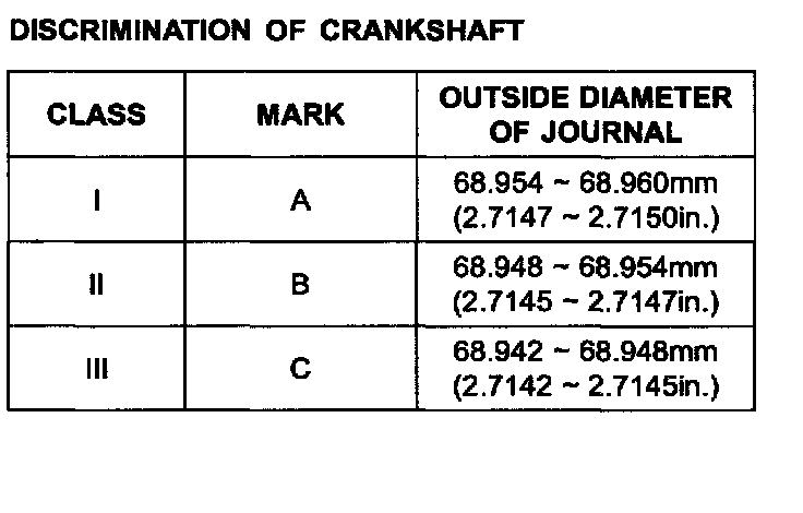Main journal outer diameter 68.942 - 68.960 mm (2.7142 - 2.7149 inch)