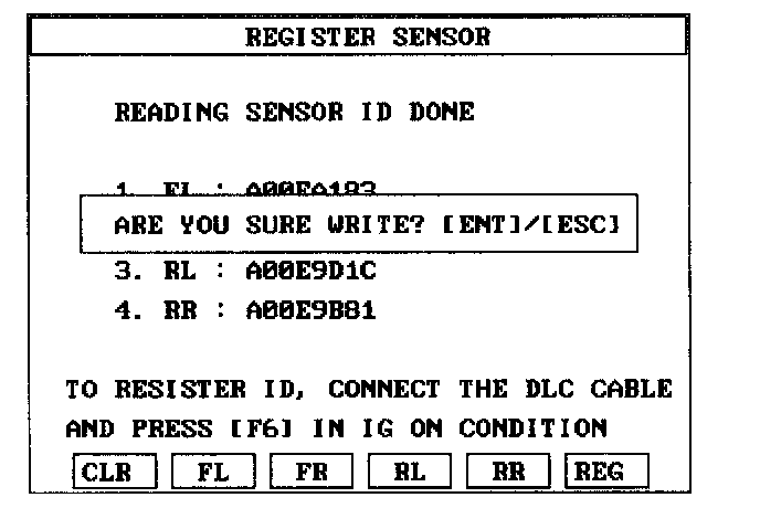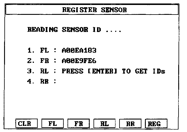 2. Read the four sensor's IDs starting with sensor 1 (1 normally front left, 2 front right, 3 rear left, 4 rear right).