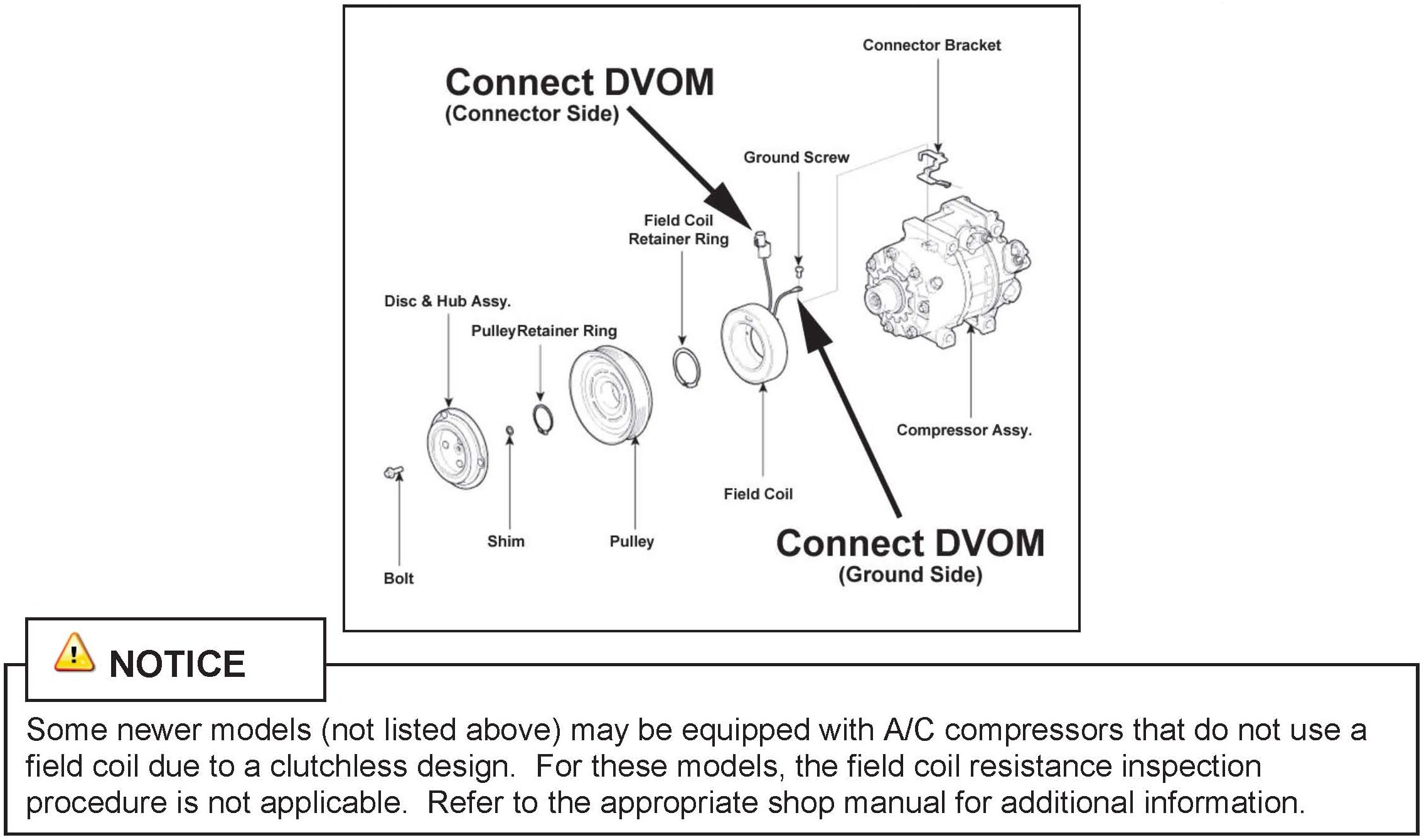 For the models in the Applicable Vehicles list below this TSB provides an additional A/C compressor field coil specification that may not be available in the shop manual