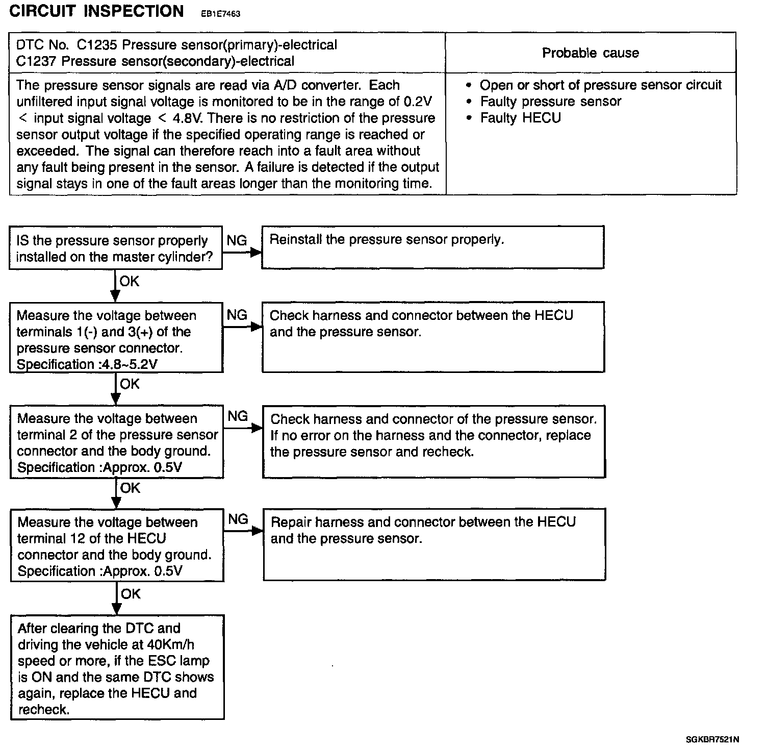 C1235 Pressure sensor(primary) - electrical C1237 Pressure sensor(secondary) - electrical:
