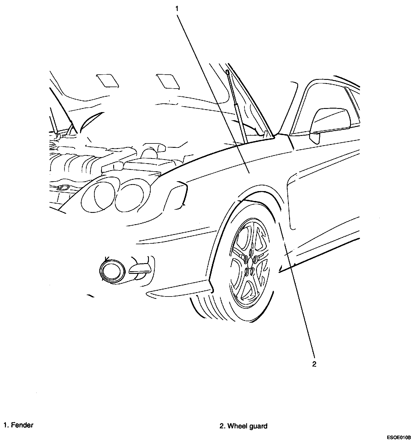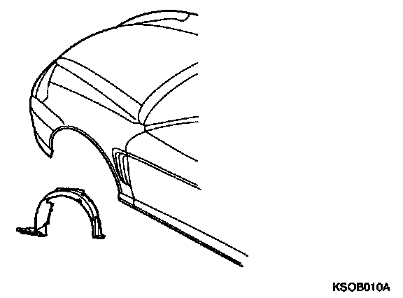N0TE: In order to prevent the fender mounting bolt area from forming rust, apply tape sealer between the fender and the body panel.