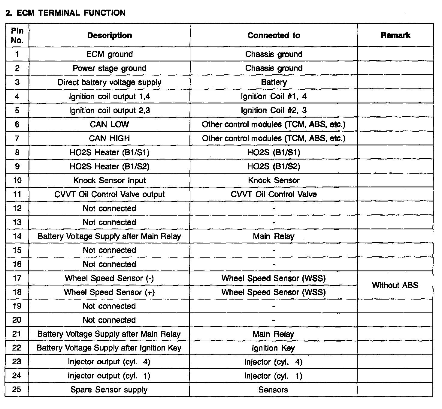 ECM Terminal Input/Output Signal Part 1: